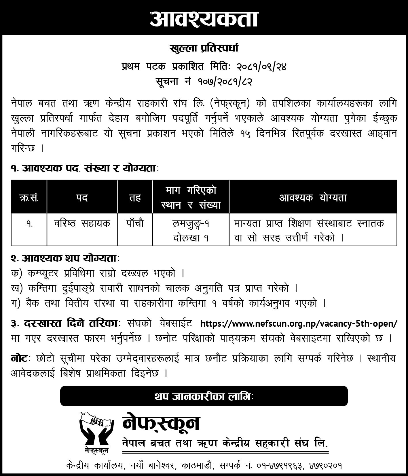 खुल्ला प्रतिस्पर्धा मार्फत कर्मचारी माग गरिएको सूचना
