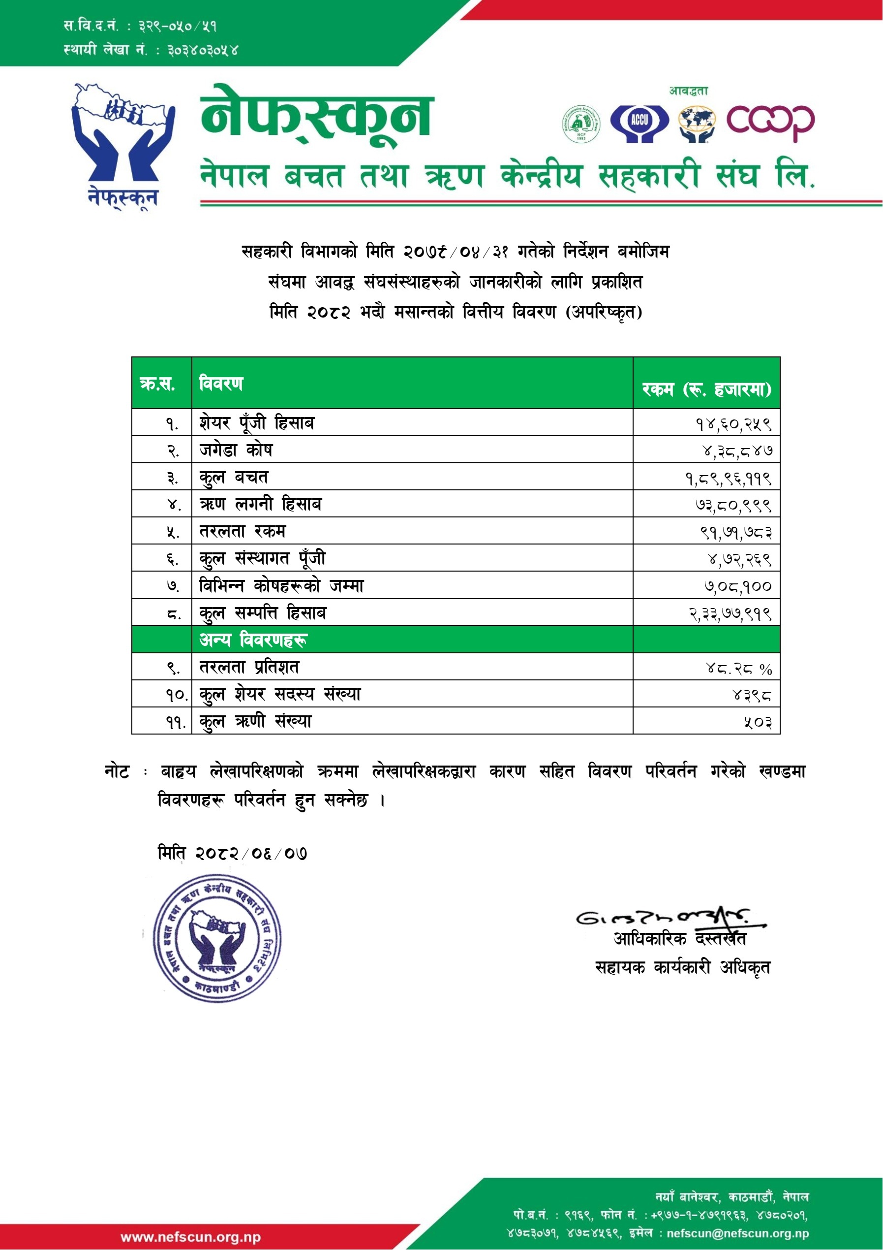 २०८२/०५/३१ को वित्तीय विवरण (अपरिष्कृत)