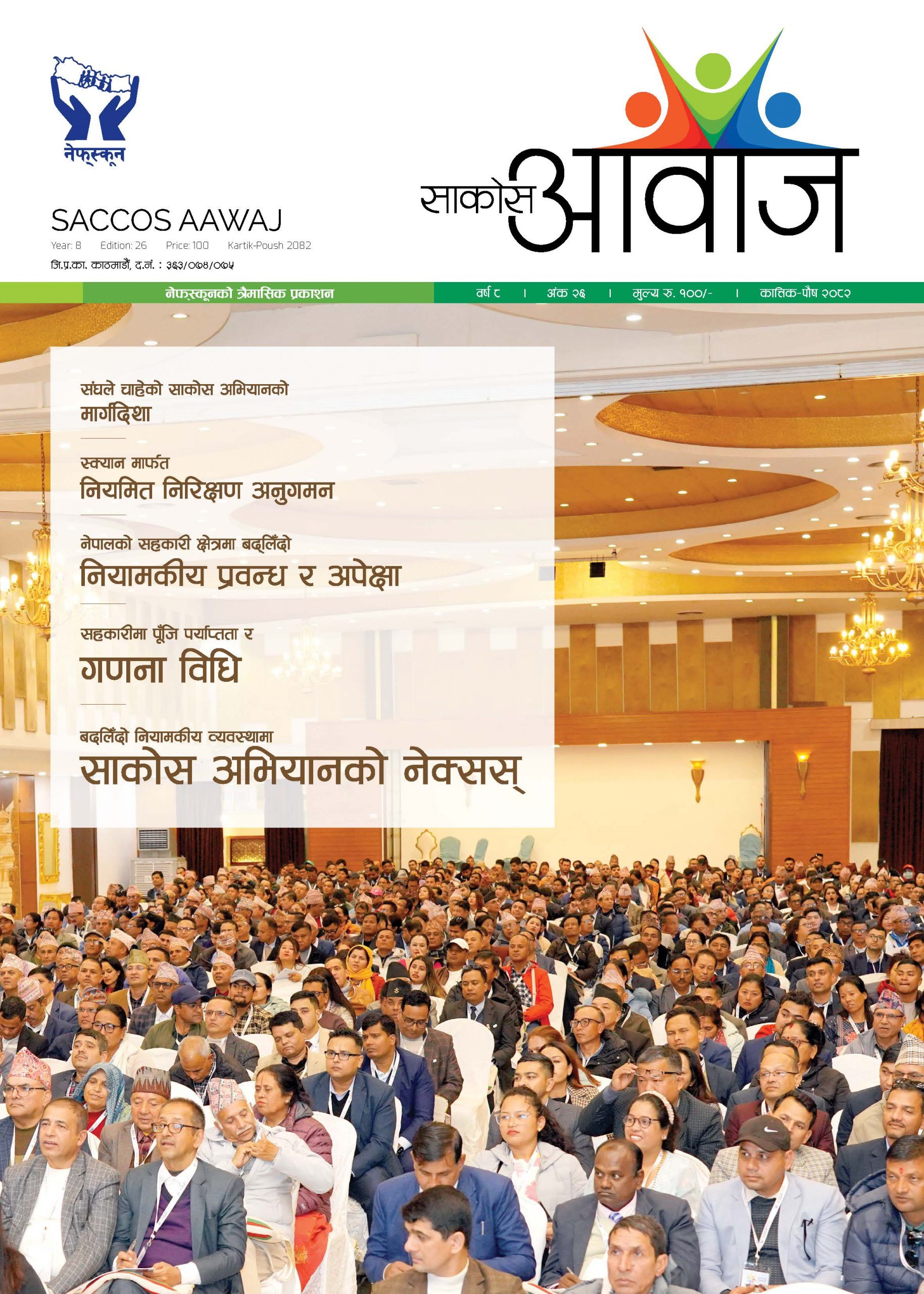 Saccos Aawaj (Tri-monthly publication) SearchSearch Recent २०८२/११/३० को वित्तीय विवरण (अपरिष्कृत) २०८२/१०/२९ को वित्तीय विवरण (अपरिष्कृत) २०८२/०९/३० को वित्तीय विवरण (अपरिष्कृत) कार्यालय सचिव (Office Secretary) तह ४ को छनोट परिक्षा संचालन सम्बन्धि सूचना २०८२/०८/२९ को वित्तीय विवरण (अपरिष्कृत) Important LinksMember Information System ServicesStationery Regular Training ACCESS PROBATION Interlending Submit
